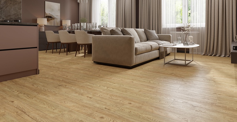 Роскошный золотистый оттенок с выразительной текстурой дуба. Усиленная 5-мм основа. Создаёт тёплую, уютную атмосферу в любом помещении.
